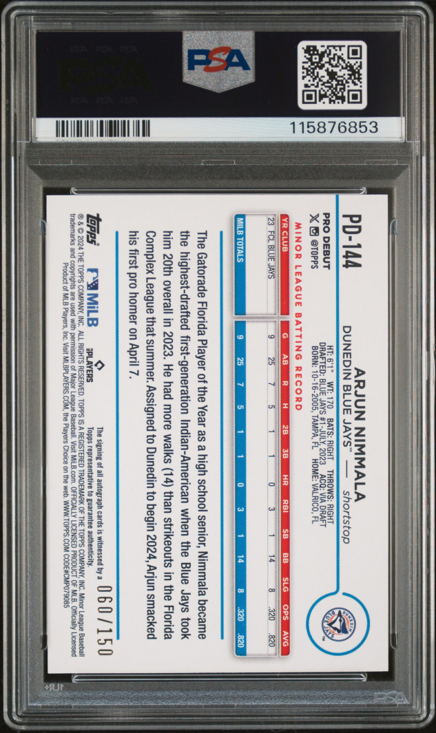 2024 Topps Pro Debut Arjun Nimmala Autograph-Blue Foil /150