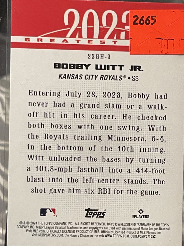 2024 Topps Series 1 - 2023 Greatest Hits Bobby Witt Jr. #23GH-9