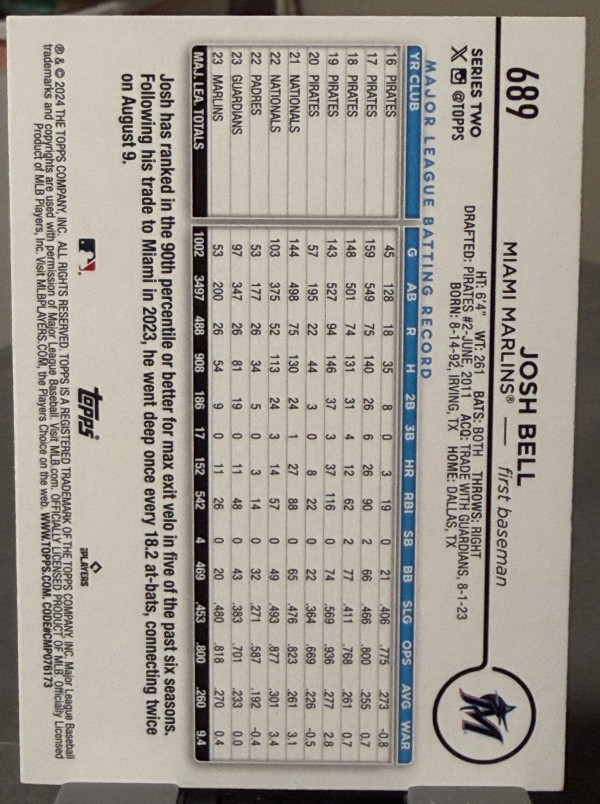 2024 Topps Series 2 - Josh Bell #689