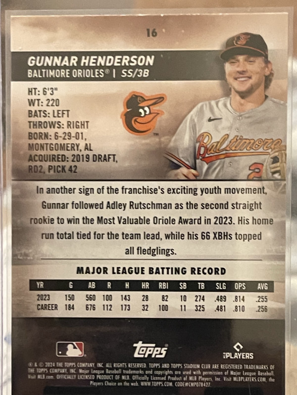 2024 Topps Stadium Club Gunnar Henderson #16 Red Foil