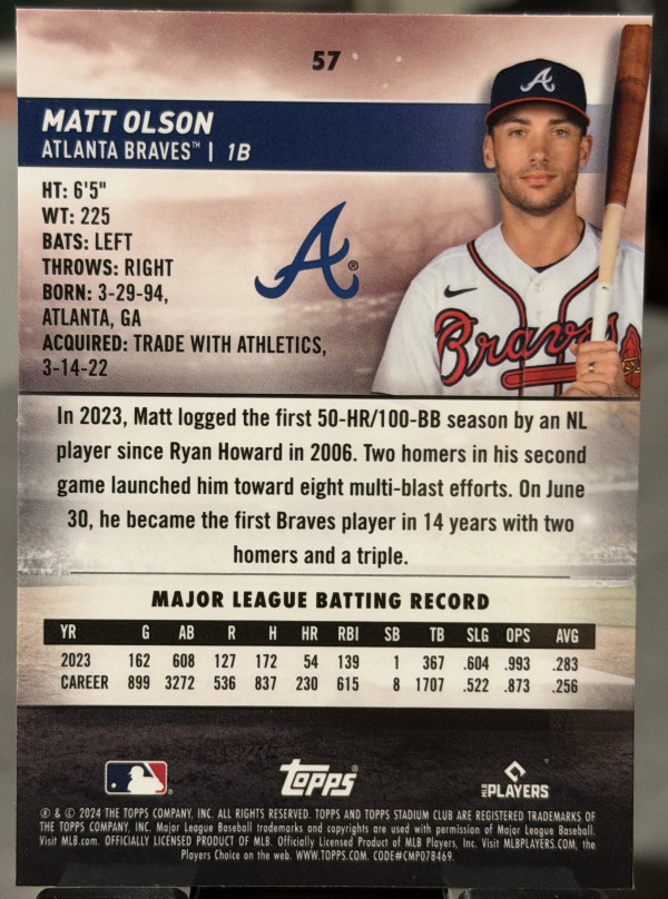 2024 Topps Stadium Club - Matt Olson #57 Chrome Green Refractor