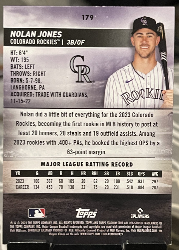 2024 Topps Stadium Club - Nolan Jones #179 Red Foil