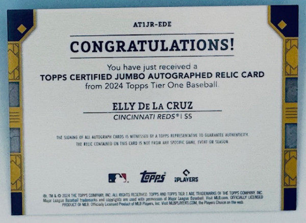 You are purchasing a 2024 Topps Elly De La Cruz Relic Rookie Topps. You will receive the exact item in the photographs. Thank you for looking.
