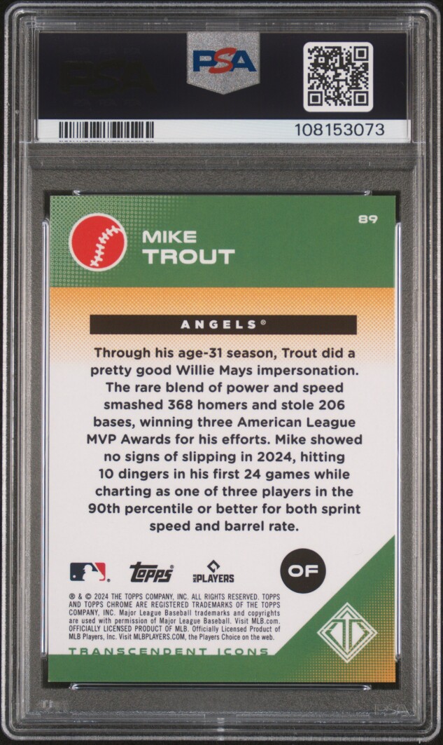 You are purchasing a 2024 Topps Transcendent Mike Trout #89 Variation Red 1/5 PSA 10. Thank you for looking.