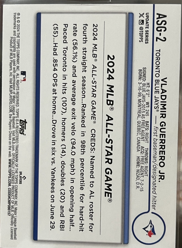 2024 Topps Update Series - 2024 All-Star Game Vladimir Guerrero Jr. #ASG-2 Variety