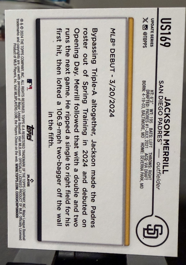 2024 Topps Update Series - Rookie Debut Jackson Merrill #US169 (RC)