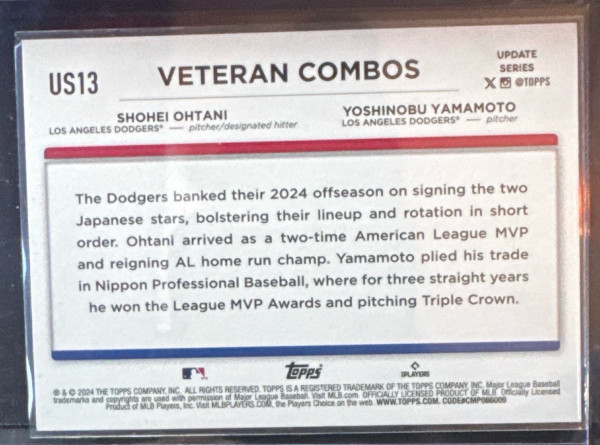 2024 TOPPS UPDATE US13 SHOHEI OHTANI YOSHINOBU YAMAMOTO DODGERS