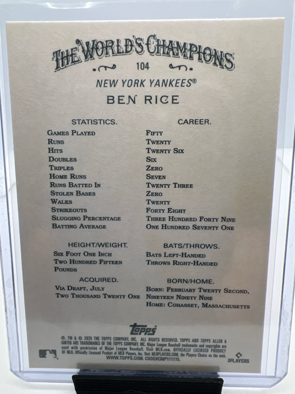 2025 Allen & Ginter #104 Ben Rice RC