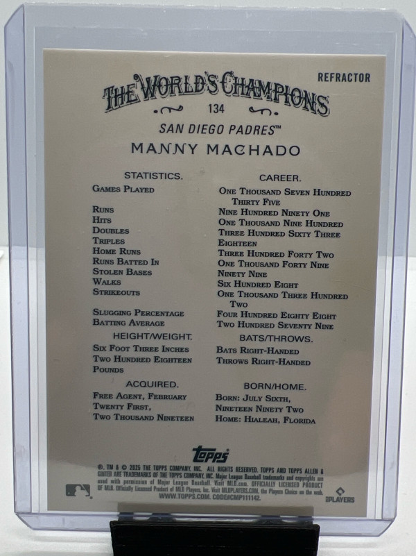 2025 Allen & Ginter #134 Manny Machado chrome refractor variation