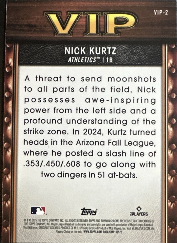 2025 Bowman Baseball Nick Kurtz Very Important Prospects #VIP-2 Athletics