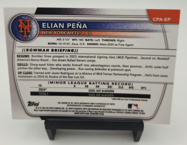 Elian Peña was MLB Pipeline's No. 3 international prospect in the 2025 signing class MLB, and the Mets signed him to a club-record $5 million bonus MLB — the largest in franchise history. His signing bonus was surpassed by only one player in the entire class: Roki Sasaki. Rising Apple