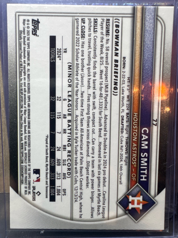 2025 Bowman Chrome Cam Smith Red RC Variation Rookie #77 Astros