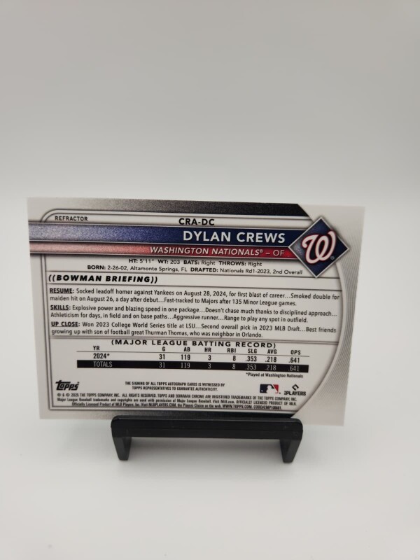 2025 Bowman Chrome Dylan Crews RC Auto Refractor /499 #CRA-DC Nationals