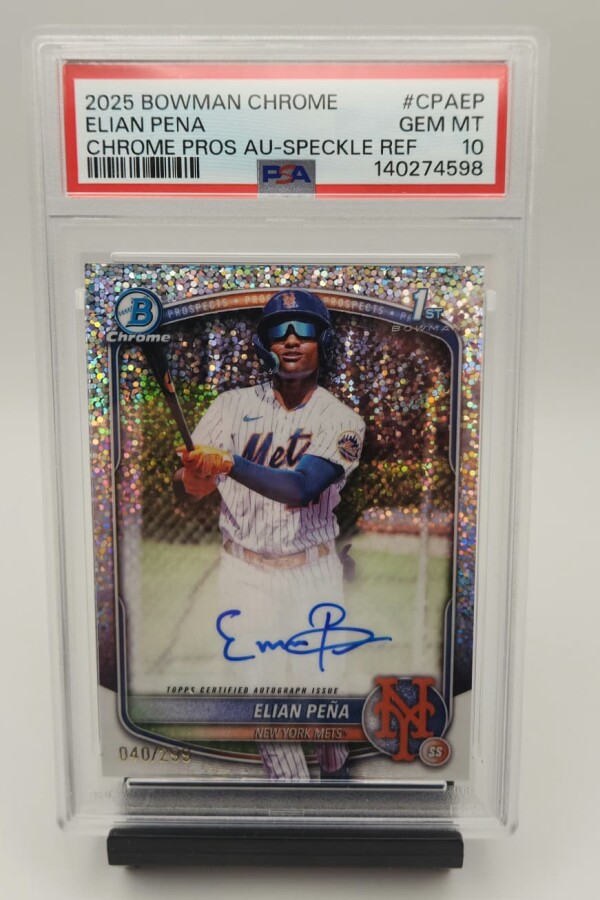 2025 Bowman Chrome Elian Pena CPA-EP 1st Auto Speckle Ref /299 PSA 10 Mets