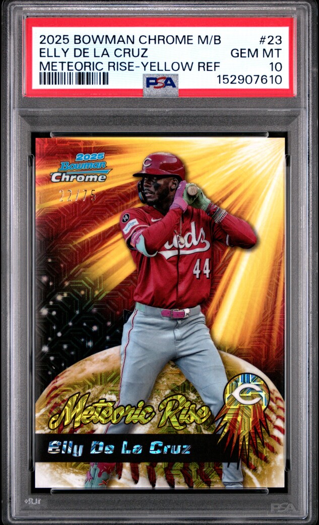 2025 Bowman Chrome Elly De La Cruz Meteoric Rise-Yellow Ref /75