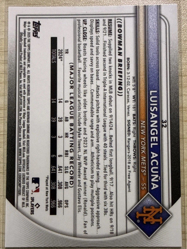 2025 Bowman Chrome - Luisangel Acuna #32 Sp Rookie Red Rc Variation (RC)