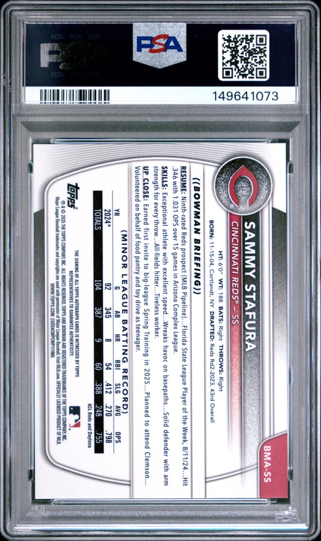 2025 Bowman Chrome Mega Box Chrome Prospects Autographs Sammy Stafura Chrome Pros Auto-Blue Ref