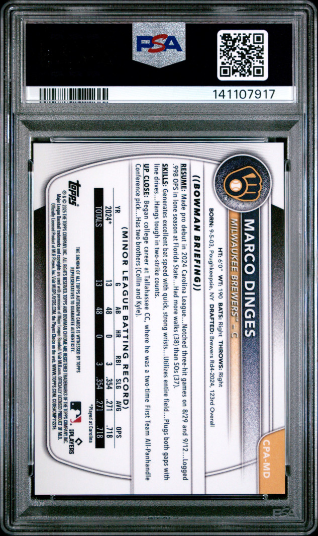 2025 Bowman Chrome Prospect Autographs Marco Dinges Chr Pros Auto-Green Ref