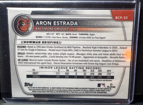 2025 Bowman - Chrome Prospects Aron Estrada #BCP-33 Reptilian Refractor (RC)