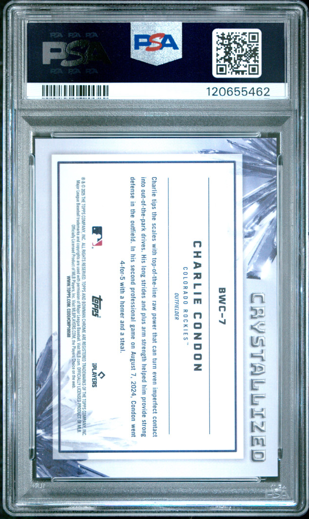 2025 Bowman Crystallized Charlie Condon PSA 8 SSP