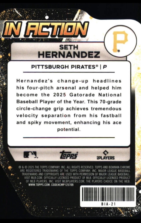 2025 Bowman Draft #BIA-21 Seth Hernandez Bowman In Action Pittsburgh Pirates (RC)