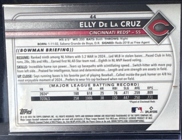 2025 Bowman - Elly De La Cruz #44 Chrome Mojo Refractor