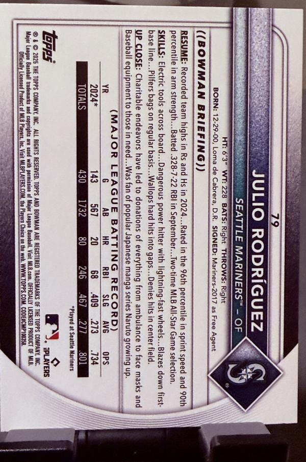 2025 Bowman Julio Rodriguez #79 /175 Pink Parallel SP