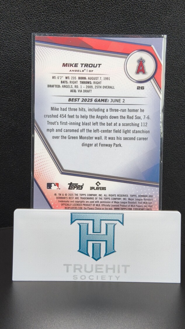 You are purchasing a 2025 Bowman's Best Mike Trout #26. You will receive the exact item in the photographs. Thank you for looking.