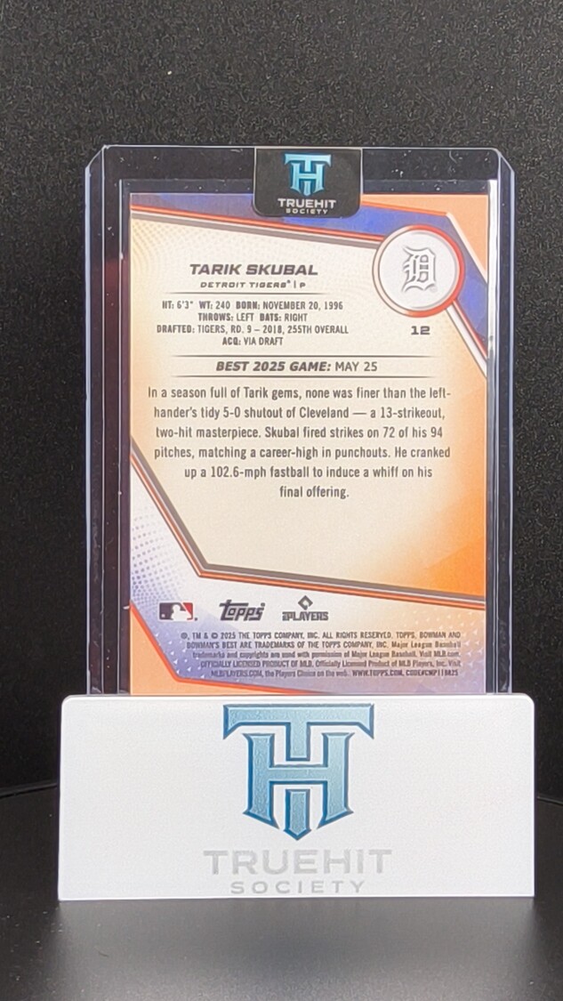You are purchasing a 2025 Bowman's Best Tarik Skubal #12 /25. You will receive the exact item in the photographs. Thank you for looking.
