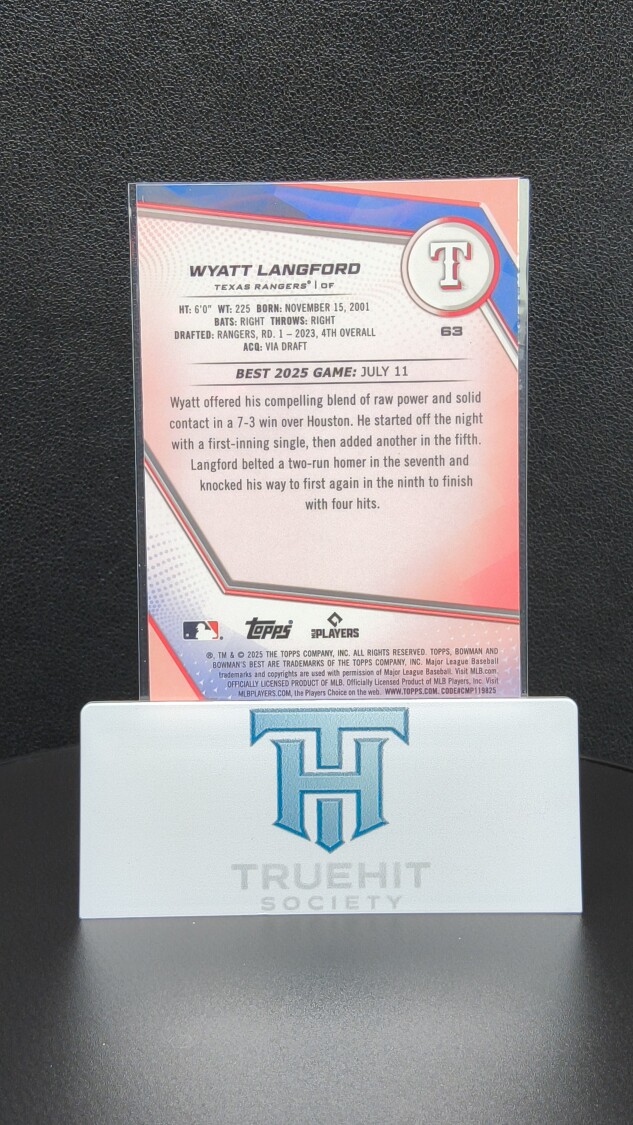 You are purchasing a 2025 Bowman's Best Wyatt Langford #B23-WL. You will receive the exact item in the photographs. Thank you for looking.