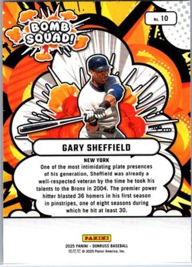 This is a nice example of a 2025 Donruss #10 Gary Sheffield Bomb Squad