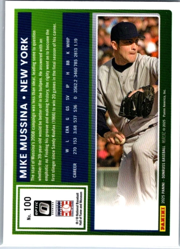 This is a nice example of a 2025 Donruss #100 Mike Mussina Optic