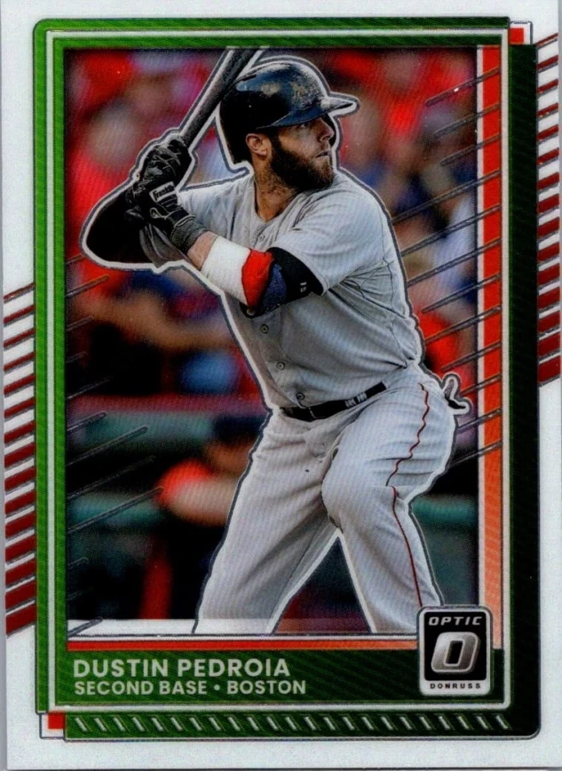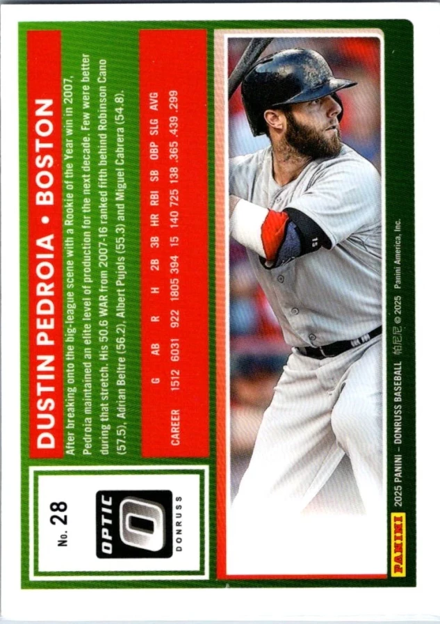 This is a nice example of a 2025 Donruss #28 Dustin Pedroia Optic