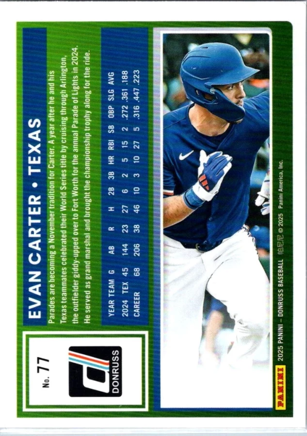 This is a nice example of a 2025 Donruss #77 Evan Carter