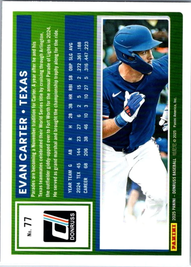 This is a nice example of a 2025 Donruss #77 Evan Carter