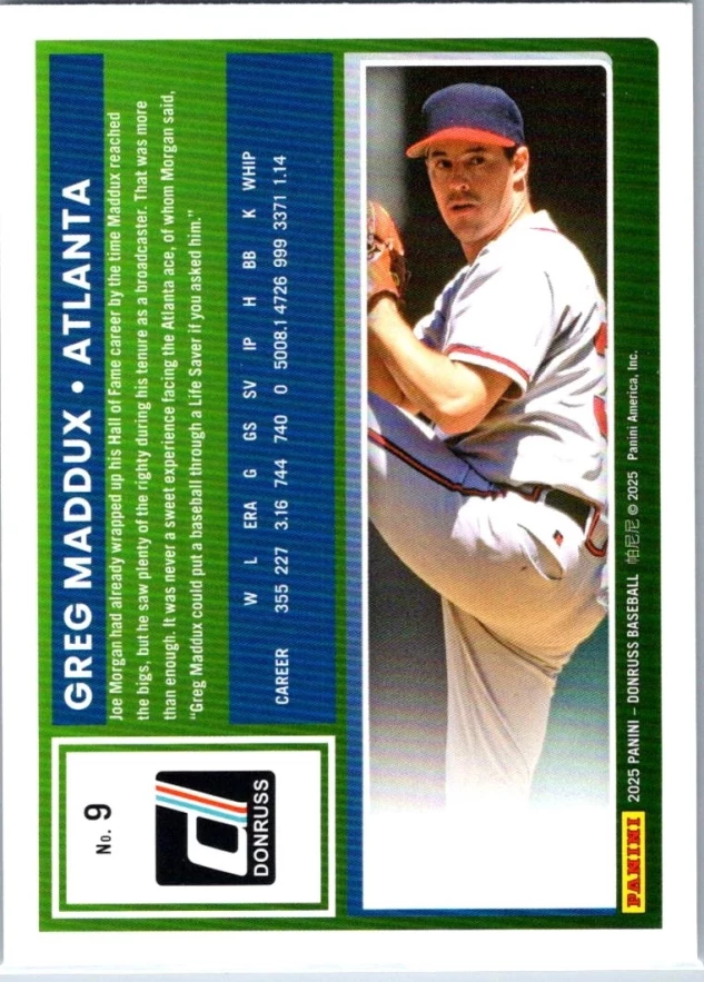 This is a nice example of a 2025 Donruss #9 Greg Maddux