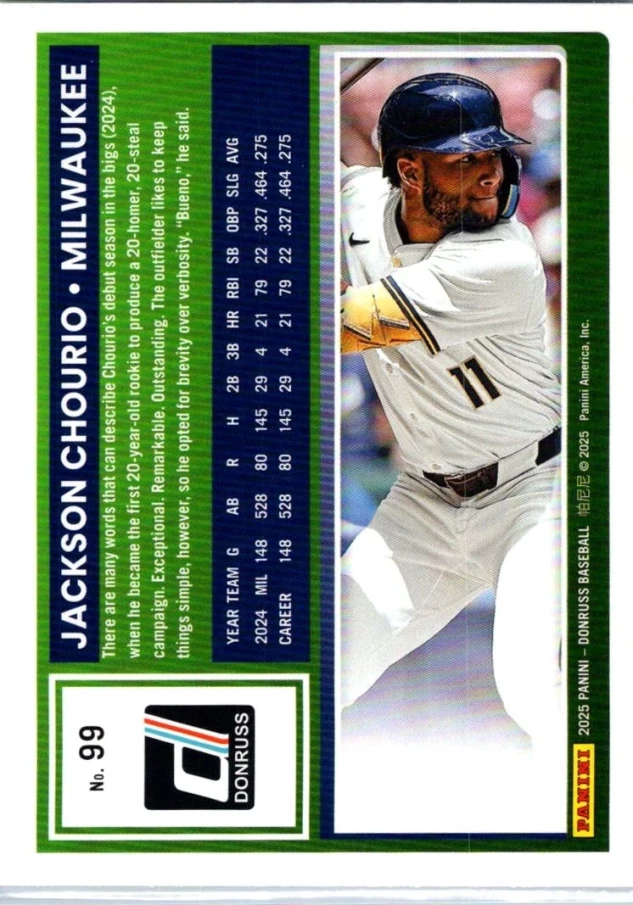 This is a nice example of a 2025 Donruss #99 Jackson Chourio