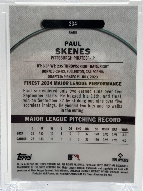 2025 Finest #234 Paul Skenes Pearl Checkerboard Refractor #25/30