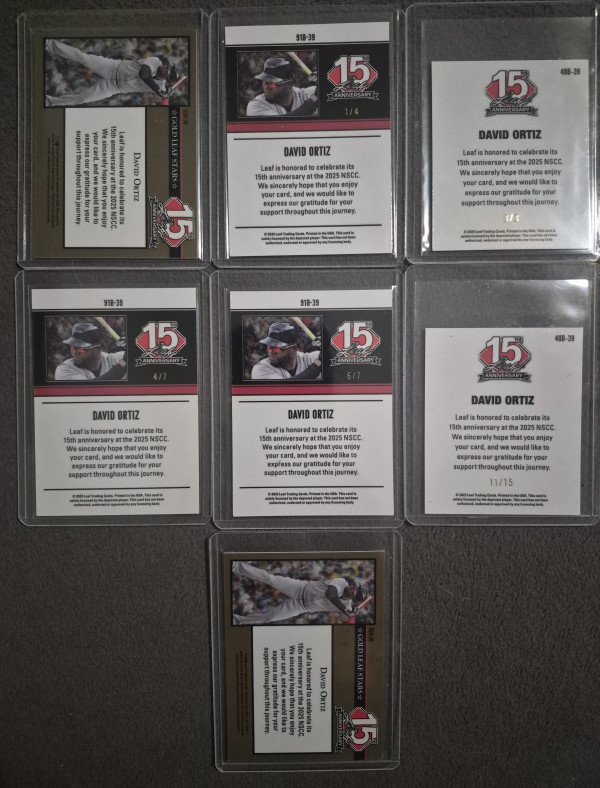 2025 Leaf 15th Anniversary David Ortiz 7 Card Lot