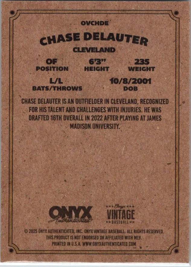 This is a nice example of a 2025 Onyx Vintage #OVCHDE Chase Delauter