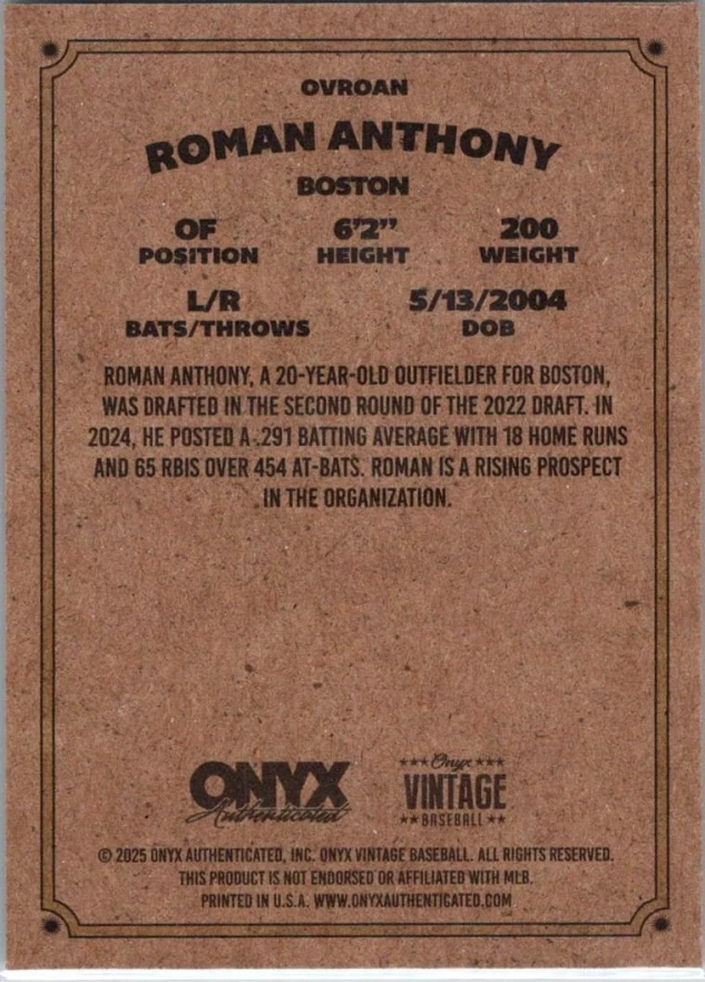 This is a nice example of a 2025 Onyx Vintage #OVROAN Roman Anthony