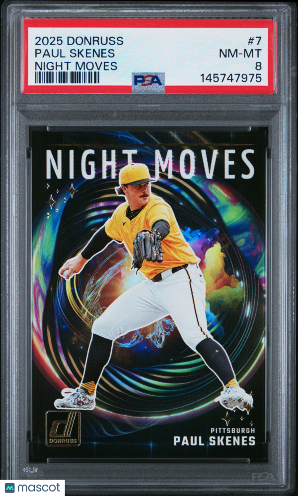 You are purchasing a 2025 Panini Donruss Night Moves Paul Skenes #7 PSA 8. You will receive the exact item in the photographs. Thank you for looking.