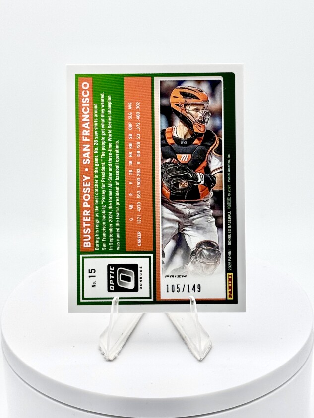 You are purchasing a 2025 Panini Donruss Optic Buster Posey #15 Flex 105/149. You will receive the exact item in the photographs. Thank you for looking.