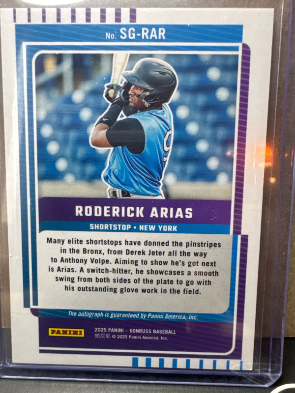 2025 Panini Donruss- Signature Series Purple Roderick Arias Auto 21/25 #SG-RAR