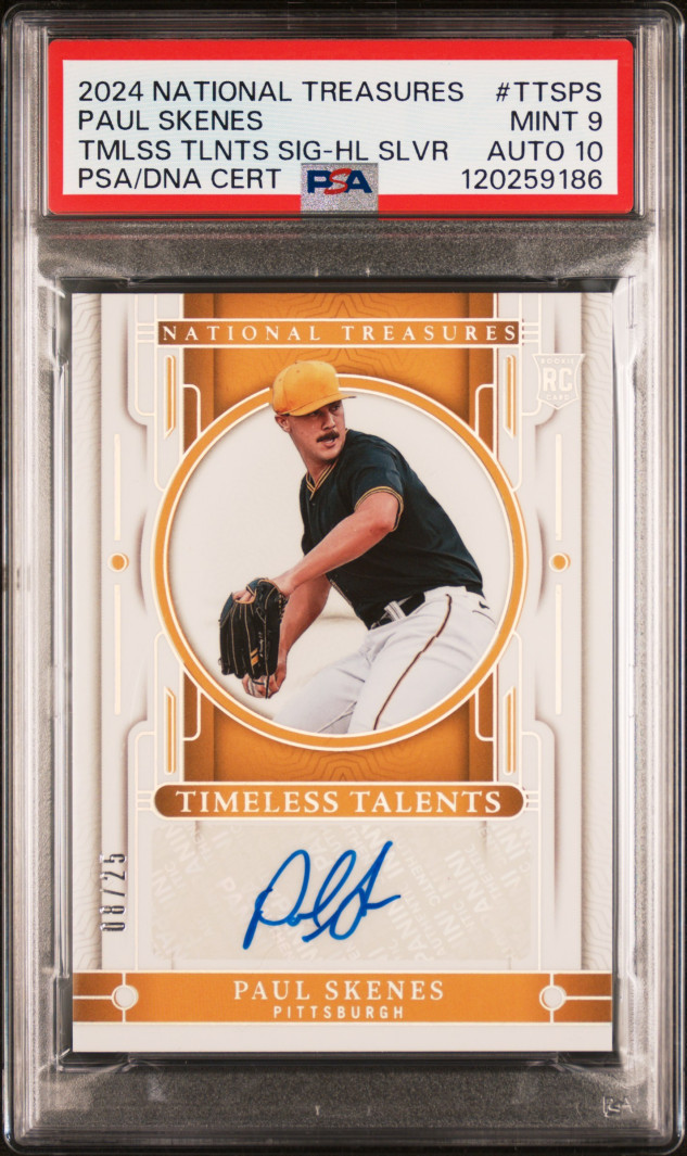 2025 PANINI NATIONAL TREASURES TIMELESS TALENTS HOLO SILVER AUTOGRAPH #TTS-PS PAUL SKENES RC (08/25) PSA 9 - POP 1