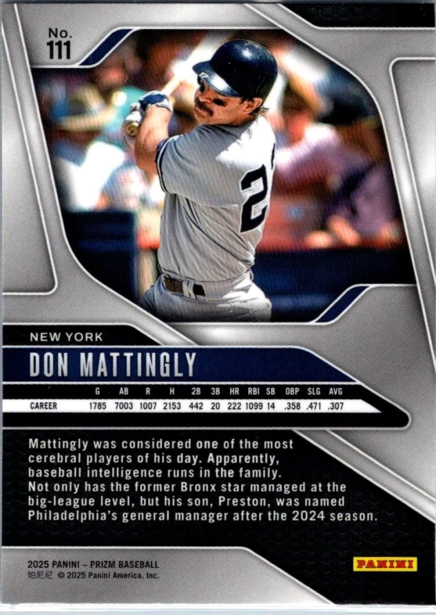 This is a nice example of a 2025 Panini Prizm #111 Don Mattingly