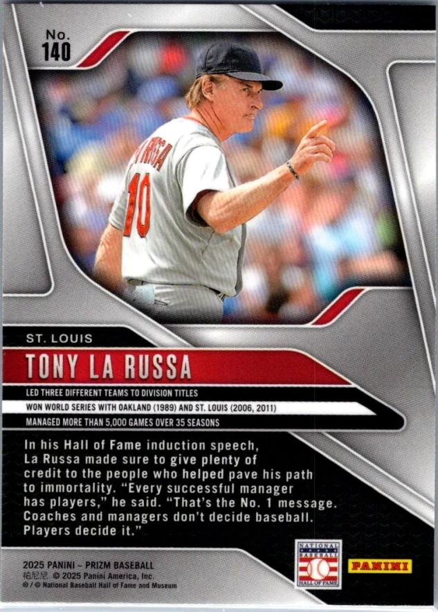 This is a nice example of a 2025 Panini Prizm #140 Tony La Russa