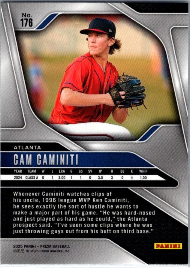 This is a nice example of a 2025 Panini Prizm #176 Cam Caminiti