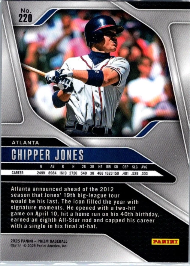 This is a nice example of a 2025 Panini Prizm #220 Chipper Jones