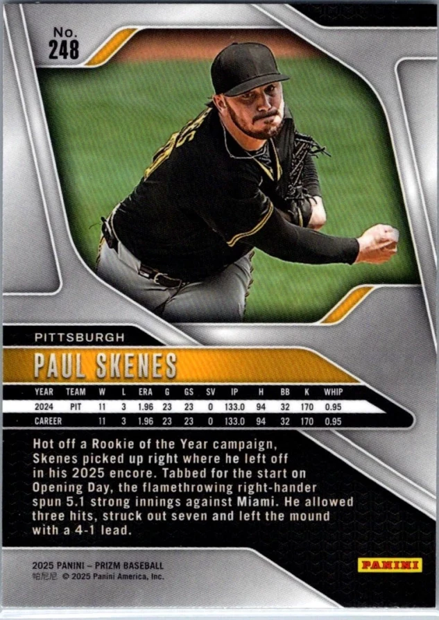 This is a nice example of a 2025 Panini Prizm #248 Paul Skenes